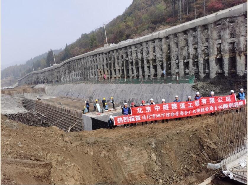 项目自进场以来,在通化市政府、建管部门的关怀和帮助下,主动出击,加强与各方的沟通协调,解决了征地拆迁、环水保及标准化工地建设等难题。施工过程中,我公司通化项目部高度重视边坡支护、高边坡防护、基坑排水、管廊主体防水等问题,管廊基坑开挖严格遵守“开槽支撑,先撑后挖,分层开挖,严禁超挖”的原则,合理组织、精心管理,不断优化施工方案,采取各种有效措施,克服了各种施工难题。经过不懈的努力,通化项目部取得了管廊主体工程完工的阶段性胜利,为本工程的全部完工奠定了坚实的基础。