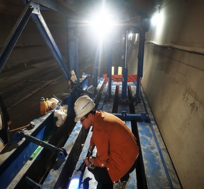 首组水沟电缆槽位于花岩头隧道进口里程DK307+149~DK307+141,水沟电缆槽承担着隧道排水、控制电缆的屏蔽干扰和重腐蚀环境中电缆的防护功能,修筑工序较为复杂,施工细节较多。施工前,项目工程部长金林按照设计要求对作业班组进行了详细的技术交底,钢筋的下料安装、水沟尺寸,尤其是排水管道的安装与二衬排水的衔接提出了严格的质量要求。为解决“跑模”和功效低的问题,我司杭温项目采用轨行式液压水沟电缆槽台车进行施工,省去传统模板安装加固时间,可以保证每天浇筑1模,大大提高了工作效率。施工过程中技术人员严把质量关,对不符合要求的部位提出整改要求,多举措保障了首组水沟电缆槽混凝土色泽一致、线形美观,外观质量和整体效果良好。